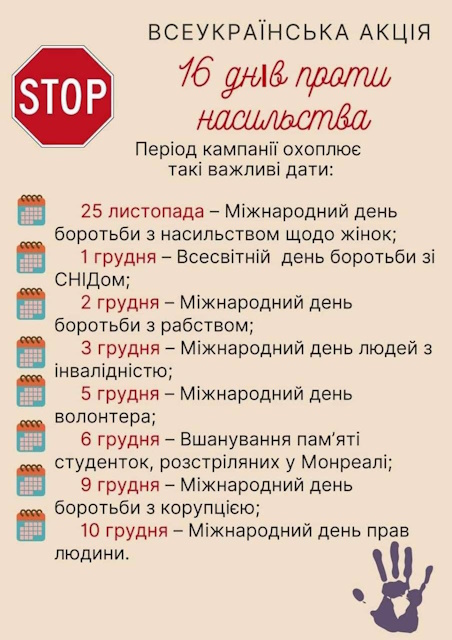 У Синевирському ліцеї розпочалася щорічна всеукраїнська акція «16 днів проти насильства», яка триває з 25 листопада по 10 грудня та має на меті привернути увагу здобувачів освіти, педагогів і батьків до проблеми насильства у суспільстві, родині та освітньому середовищі.