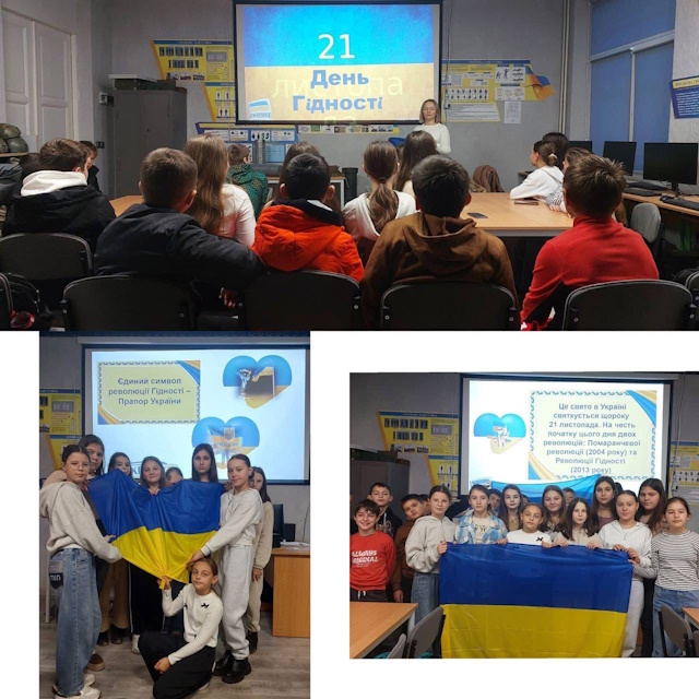 Під час занять школярі дізналися про значення цього дня для українського народу, про події Революції Гідності, подвиг Героїв Небесної Сотні та важливість збереження свободи й людської гідності. Учні переглядали тематичні матеріали, брали участь в обговореннях, ділилися власними думками та активно висловлювали позиції щодо єдності, поваги й громадянської свідомості.