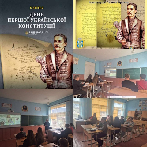 Учителька історії Цімбота Тетяна Михайлівна провела урок, присвячений одній з найважливіших пам’яток української політико-правової думки — Конституції Пилипа Орлика.