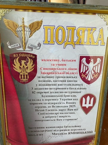 Учні нашого ліцею не на словах знають, що таке благодійність. Вони завжди беруть активну участь у різних благодійних акціях. Зокрема, здобувачі освіти, їхні батьки та вчителі ліцею неодноразово допомагали ЗСУ, цього року на святі Першого дзвоника, всі охочі долучилися до збору коштів, защо Синевирський ліцей був нагороджений Подякою.