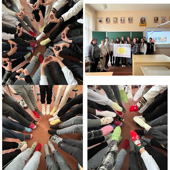 З нагоди цього дня учителька біології Шпілька Людмила Василівна разом з учнями 7-В класу провела яскравий і змістовний урок. Учні долучилися до всесвітньої акції «LOTS OF SOCKS» (#шкарпетуйся), одягнувши різнокольорові та непарні шкарпетки як символ підтримки, прийняття й унікальності кожної людини.