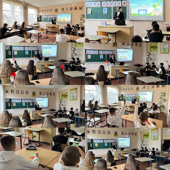 Учителька географії Чабрун Мар’яна Олександрівна організувала змістовний урок для учнів 7-В класу. Під час уроку школярі взяли участь у грі «Норм чи стрьом» та обговоренні «Екологічні проблеми та їх вирішення (еко-місії)». Вони поглибили свої знання про актуальні екологічні виклики, замислилися над шляхами їх подолання та усвідомили важливість дбайливого ставлення до природи.