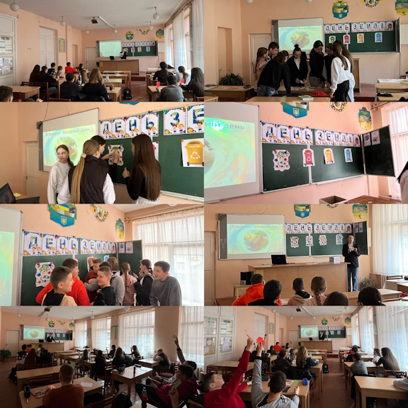 Учні 7-Б класу долучилися до екологічного батлу, під час якого брали участь у різноманітних інтерактивних активностях: вікторина «Правда чи міф»; вправа «Екосортувальник»; гра-доміно «Єдина планета — єдина родина».